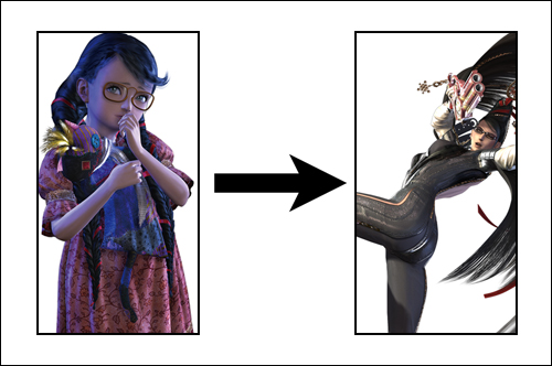 Then there’s the issue of Cereza, a little girl who looks stunningly like Bayonetta that she runs into midway through the game and, though highly reluctantly, takes into her protection. In fact, protecting Cereza becomes a major issue as Bayonetta searches for the details of her past. What we eventually find out, however, is that Cereza is actually Bayonetta’s “real self” from the distant past, brought to the future by Father Balder as part of his plot. You see, the “real” Cereza/Bayonetta as a child is timid and not very brave, but after spending time with her future self (who she calls “Mommy”) she resolves to become stronger and more brave… which results in the Bayonetta of today.