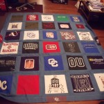 On that quilt is everything. My kindergarten graduation. My high school letters. The shirt designs from every play I was ever in, and from every high school I ever attended. Pictures of my family at my high school graduation, my bachelor’s graduation from Wisconsin. Shirts from Chadbourne, and Syracuse, and Ohio. She said the Syracuse University shirt came more or less literally off my Grandma Harper’s back. And she said it wasn’t perfect, but she wanted me to have it.