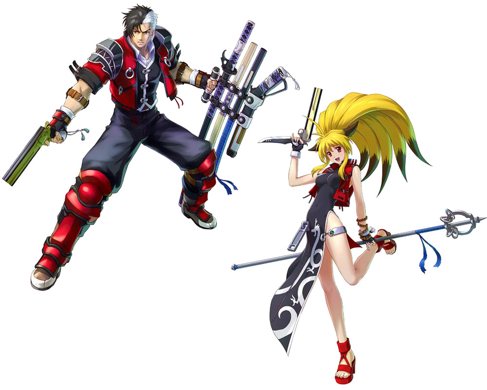 Okay. So EF is not a broad, sweeping crossover like NxC. In fact, almost all of its major characters and locations are Banpresto original characters, though they are in many ways riffs on existing SRW characters. The main characters, Haken Browning and Kaguya Nanbu, are directly referencing Kyosuke Nanbu and Excellen Browning of the SRW series (as are Reiji and Xiaomu of NxC, more indirectly), while Aschen Broedel turns out to not only reference SRW’s Lamia Loveless (and to share her voice actor) but in Exceed she turns out to be the prototype Lamia is based on (both are cyborgs/biomechanical androids of a sort). However, Reiji and Xiaomu from NxC are playable, as is KOS-MOS from the Xenosaga series.