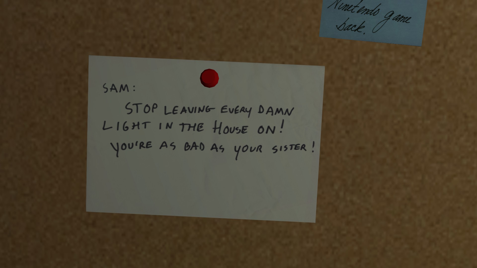 Of course, I think Fullbright rather intentionally created this artificial feeling of stress and confusion not necessarily because Kate would feel them, but because Gone Home is a game where you invade your family’s privacy to sate your curiosity, and that’s a situation where you should feel uncomfortable. I mean, the “mansion” genre tells you that you are supposed to be ransacking this place in search of answers, but the truth of the matter is that the mystery of this game is very small in scale: she expected people to be home and they’re not. The reasons could be practically anything, and while the fact that they didn’t leave a note — and Sam’s dramatic and somewhat cryptic note on the front door at minute one doesn’t help — ratchets up the confusion, as does the 1995 setting that precludes easy mobile phone or internet answers, this is not a mystery where the solution is “literally open every closed surface, every locked door, every nook and cranny of this house until I find out what happened.”