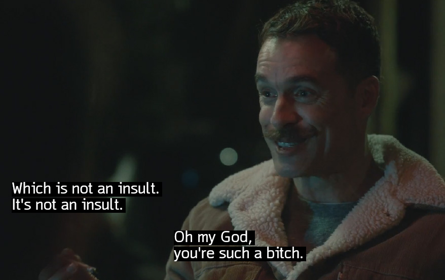 As both friends continue to laugh, Patrick also laughs, asserting “It’s not an insult! It’s not an insult,” while his friend Dom smiles and says, “Oh my God, you’re such a bitch.”